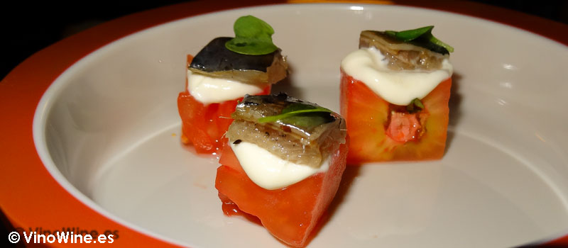 Tomate en osmosis de salmuera de cebolla crema de raifort y sardina ahumada de Restaurante Bon Amb ← Previous Next →