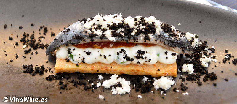 Sardina marinada, galleta de parmesano, queso fresco y mermelada de tomate de La Cuina Restaurant en Ontinyent ← Previous Next →