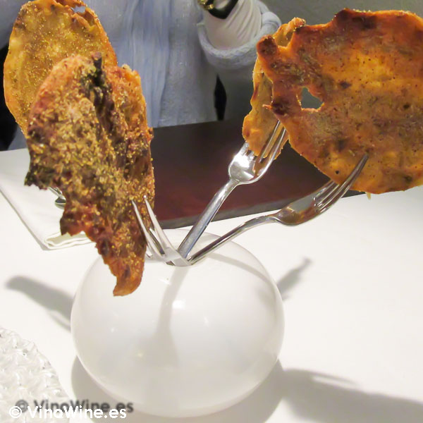 Torta de gachamiga serrana con piel de sardina salada de Maralba by Fran Martínez en Almansa ← Previous Next →