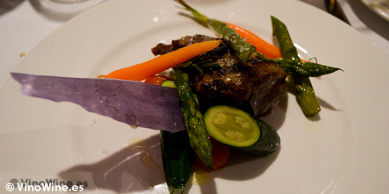 El único pase de carne no pudo ir más y mejor acompañado. Tres tintos riojanos fabulosos a cada cual mejor.